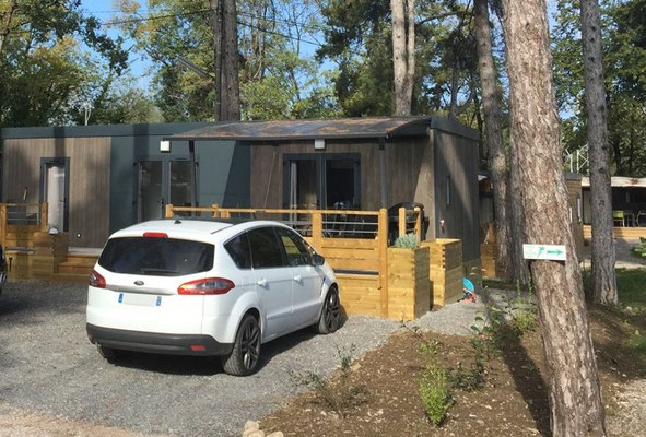 - Toiture en bac acier galvanisé laqué gris, mono-pente sur l’arrière avec 1 gouttière alu laqué et deux descentes d’eau grises, coloris gris RAL